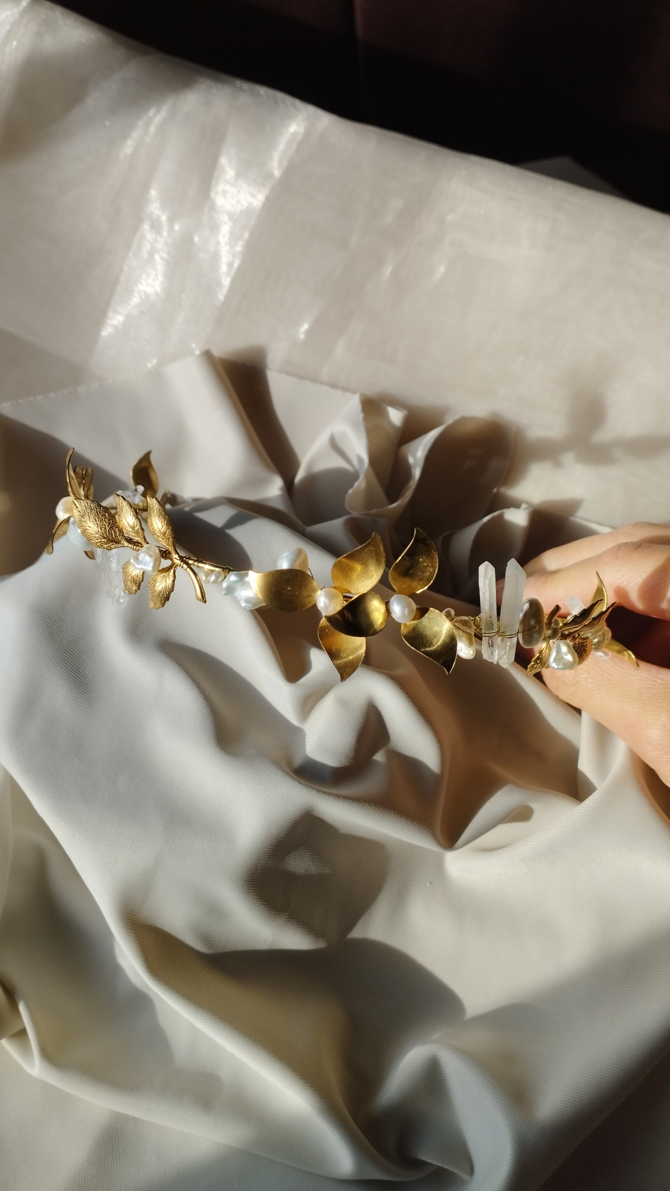 ハンドメイドのブライダルカチューシャです。